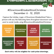 Photo instructions include taking a picture with any of the following items throughout downtown and posting to Facebook and Instagram using the hashtag #DowntownElizabethtonChristmas.